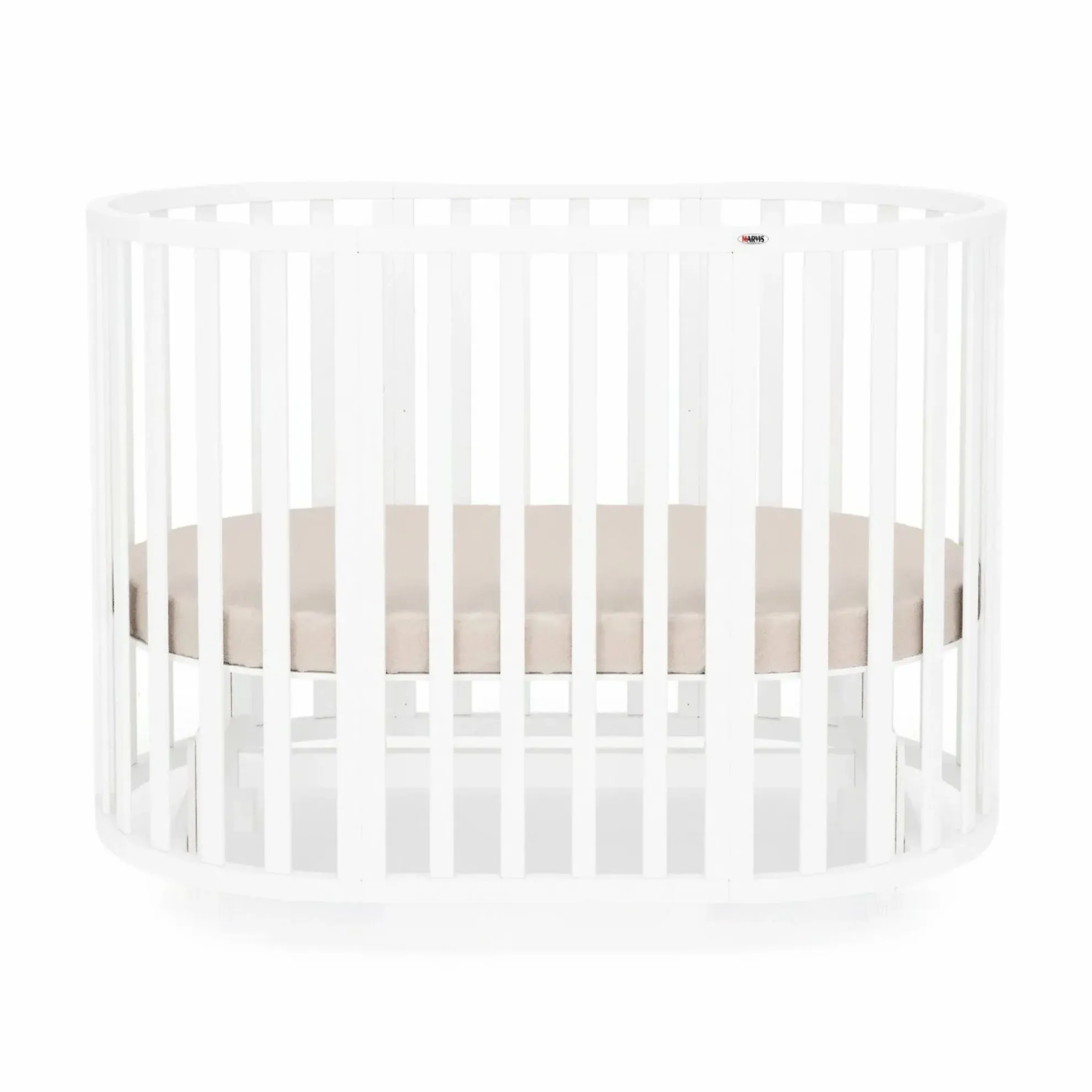 Pătuț bebe transformabil rotund/oval Maribelle 9 în 1 Alb – Ideal pentru Fiecare Etapă de Creștere a Copilului (BALANSOAR INCLUS)